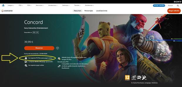 Al contrario que lo que ocurre normalmente con los juegos free to play, los juegos de descarga gratuitos, Concord es un juego de pago, y como tal ha salido al mercado en PS5 con el requisito indispensable de que sus jugadores deben disponer de una membresía de PS Plus para poder jugar, algo que puede comprobarse de manera oficial en la ficha del videojuego de la PS Store: