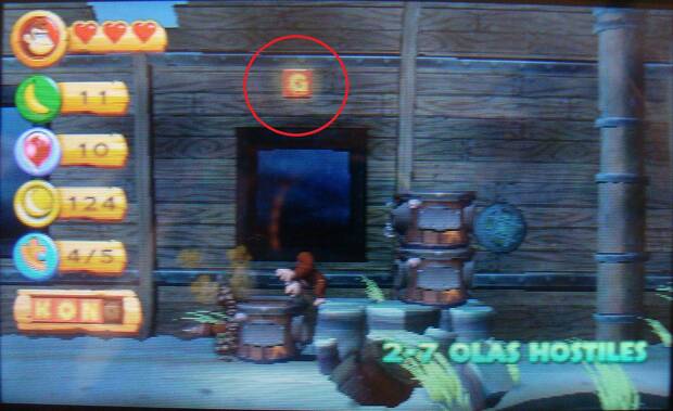 Más a la derecha, golpea el suelo frente al gran cofre para que salga el barril de meta.