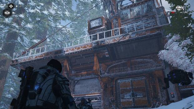 Aunque el primer acto de la campaña de Gears of War 5 es tradicional, esto es, lineal y sin pérdida, las dos siguientes partes introducen una novedad en la saga: pequeños mundos abiertos. En ellos viajamos con un esquife libremente, moviéndonos de una misión a otra a través de la nieve o las arenas del desierto (en el acto II y III, respectivamente). Pero además de las misiones principales, claramente marcadas en el mapa, encontramos misiones secundarias que hay que encontrar.