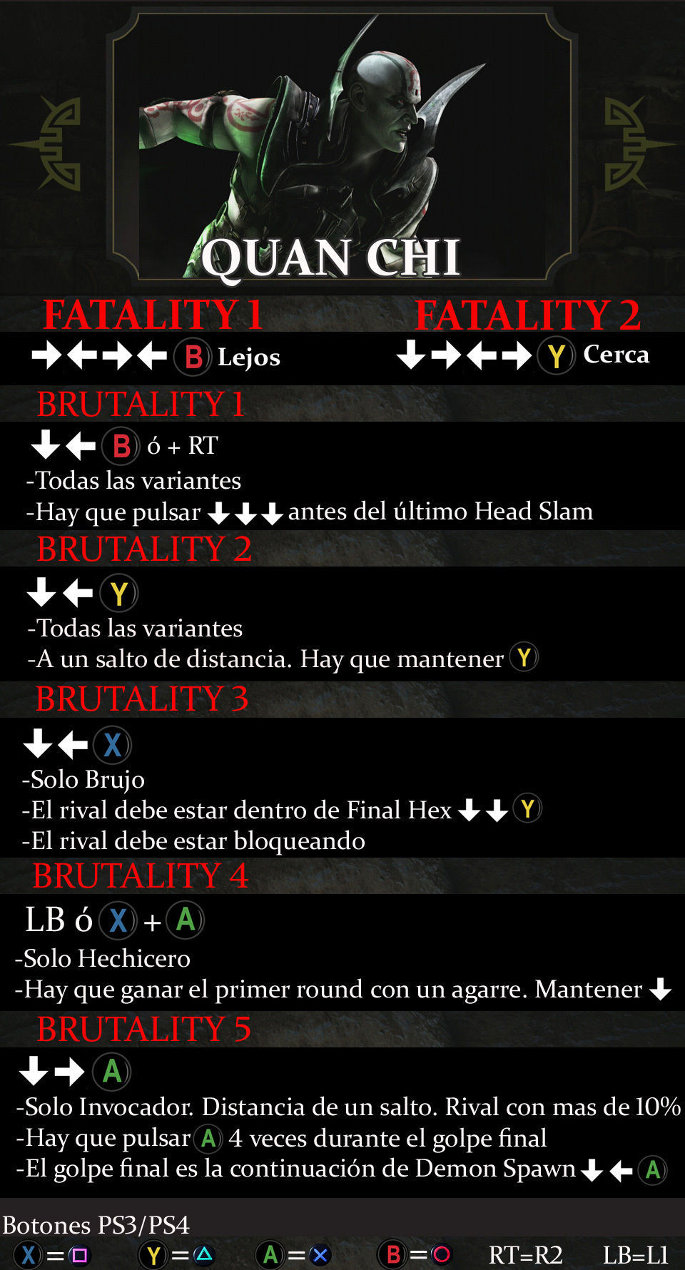 Todas las técnicas, movimientos, brutalities y fatalities de Quan Chi en Mortal Kombat X.