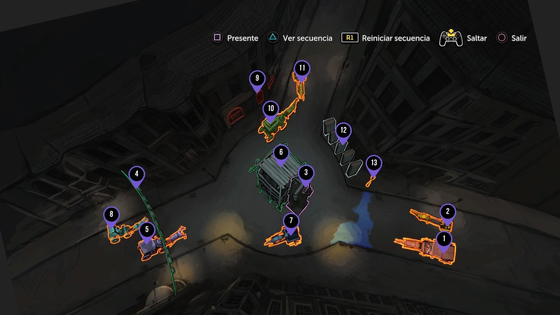 Levanta las palancas 1 y 3, dale a la de arriba y haz lo mismo con la 2, 3 y 4 para encender el segundo generador. Ve a la calle a hablar con el agente. Ahora, con el talento de Sherlock activado, tendrás que ir parándote frente a los cinco sospechosos en la escena (son todos los que hay presentes, no tiene mucho misterio). Una vez hecho esto, abre el mapa del accidente y marca tus conclusiones: