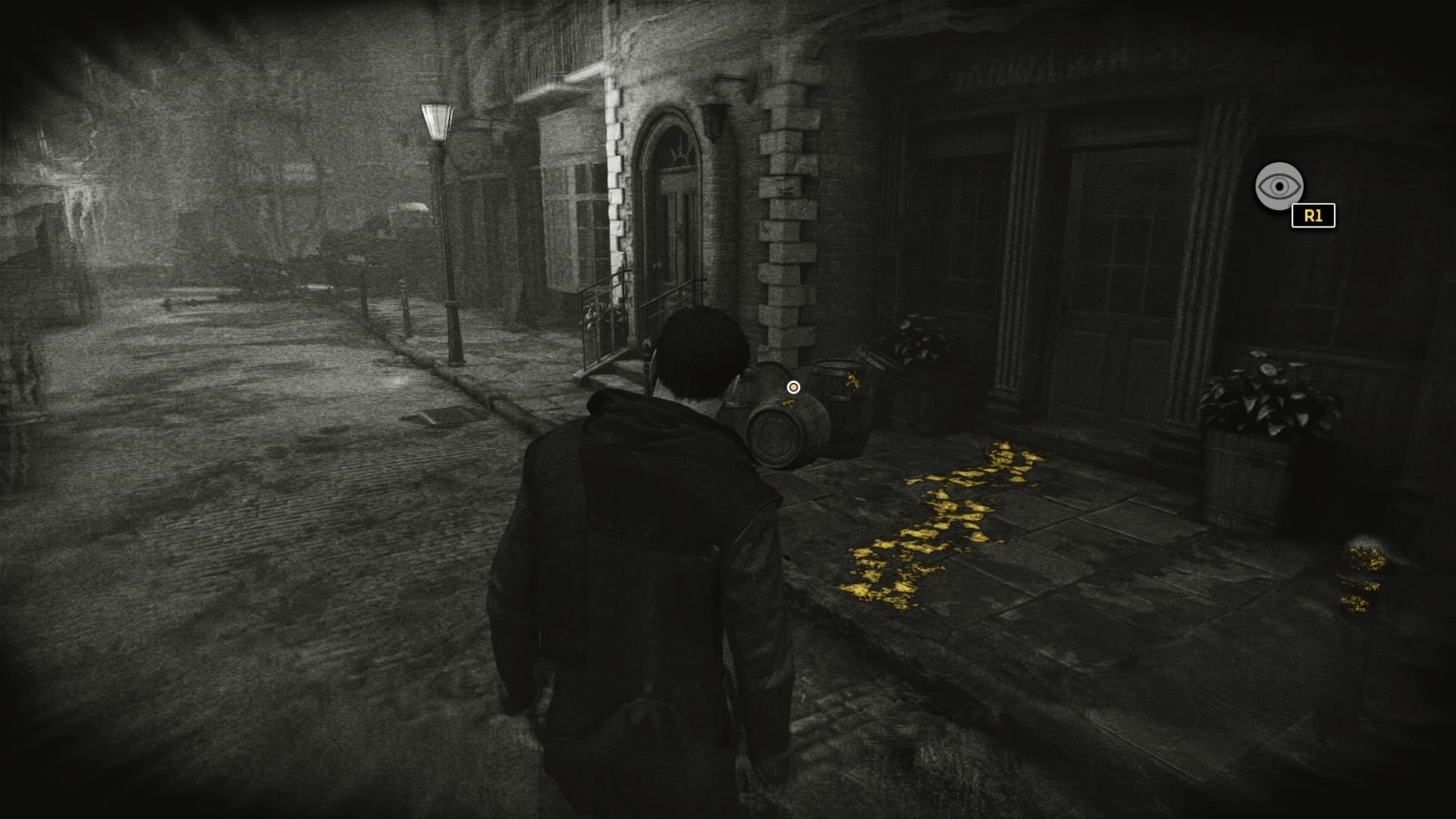Tal como te deja la cámara, verás un hombre. Simplemente habla con él y te confirmará que está bien. Rodea la plaza central para hallar otro ciudadano atrapado bajo un caballo. Examina al hombre (el sangrado se detendrá por sí mismo), el caballo (piernas atrapadas), el andamiaje (el andamio aplasta el caballo) y la sierra en el suelo (puede serrarse el andamio). Coge la sierra de mano y mueve el stick arriba y abajo repetidamente para serrar la madera. Ya solo queda apartar al herido.