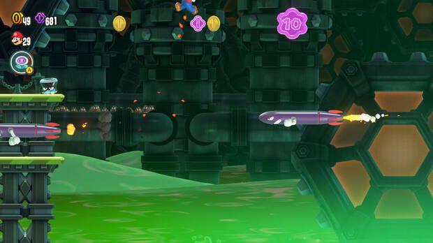 Super Mario Bros. Wonder - Localización de la Moneda púrpura #2 en Comitiva de Milo Misiles