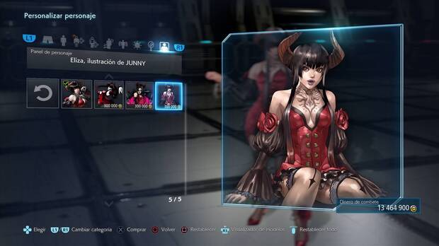 Existen dos tipos de categorías para personalizar: personaje y jugador. Al jugar a Tekken 7 conseguiremos dinero para comprar estos elementos, y a veces se conseguirán las recompensas directamente.