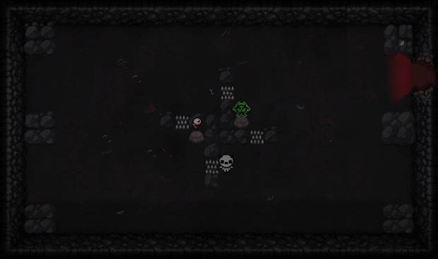 - Si decides hacerte daño con los pinchos de esta habitación, se aumenta una cuenta invisible que da la posibilidad de generar un cofre marrón o un cofre de oro.