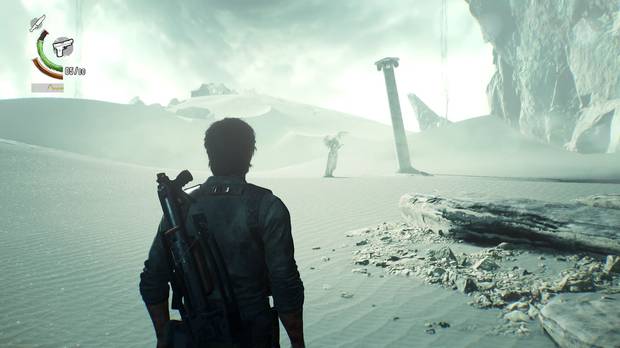 De nuevo ve hacia la derecha para ver una extraña estructura en la montaña. Justo en la entrada verás el punto en el que conseguir el Recuerdo residual 23.