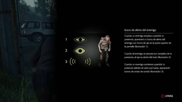 Cuando un enemigo empieza a percibir tu presencia, aparecerá un icono de alerta del enemigo con forma de ojo en la parte superior de la pantalla.